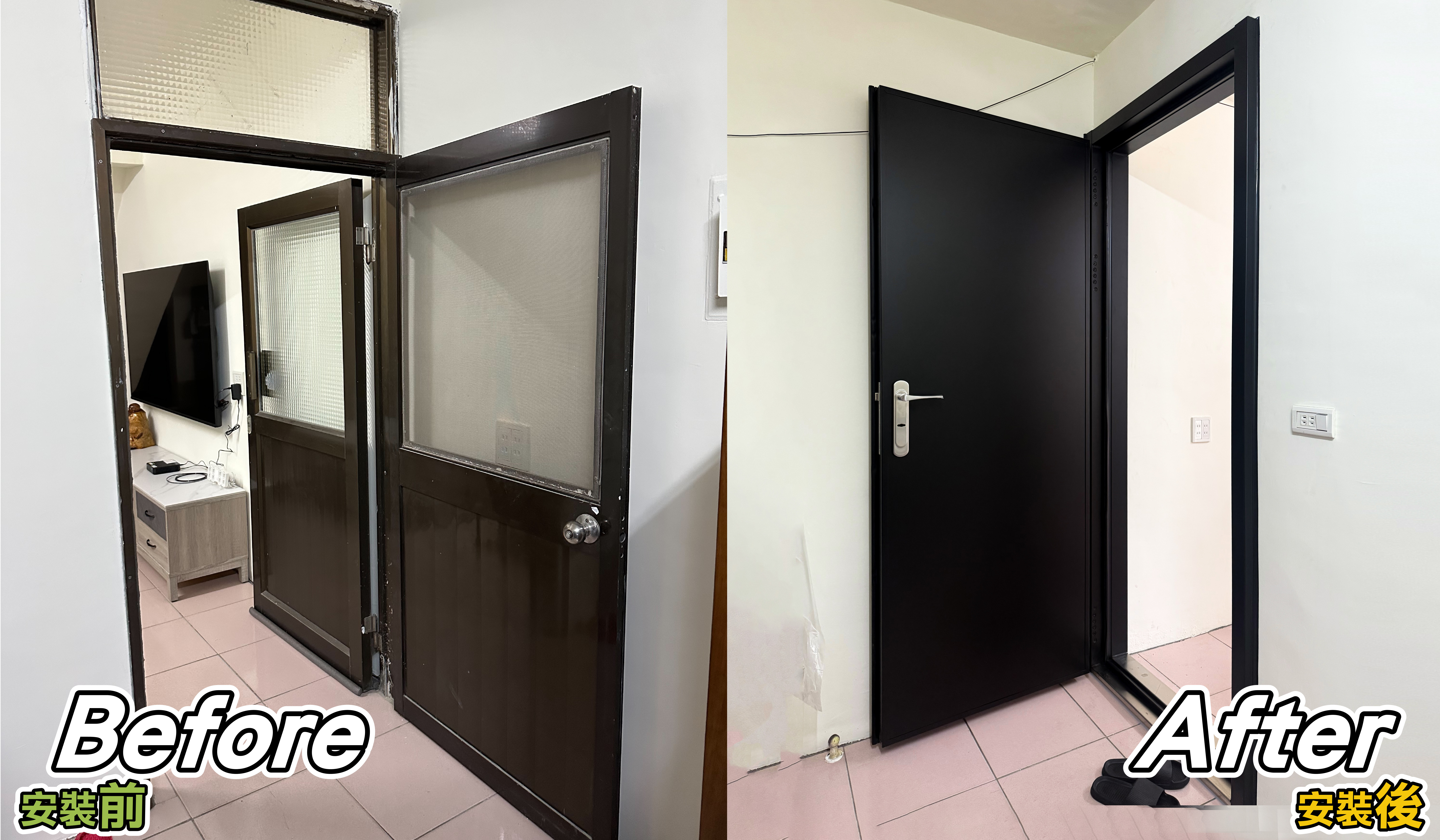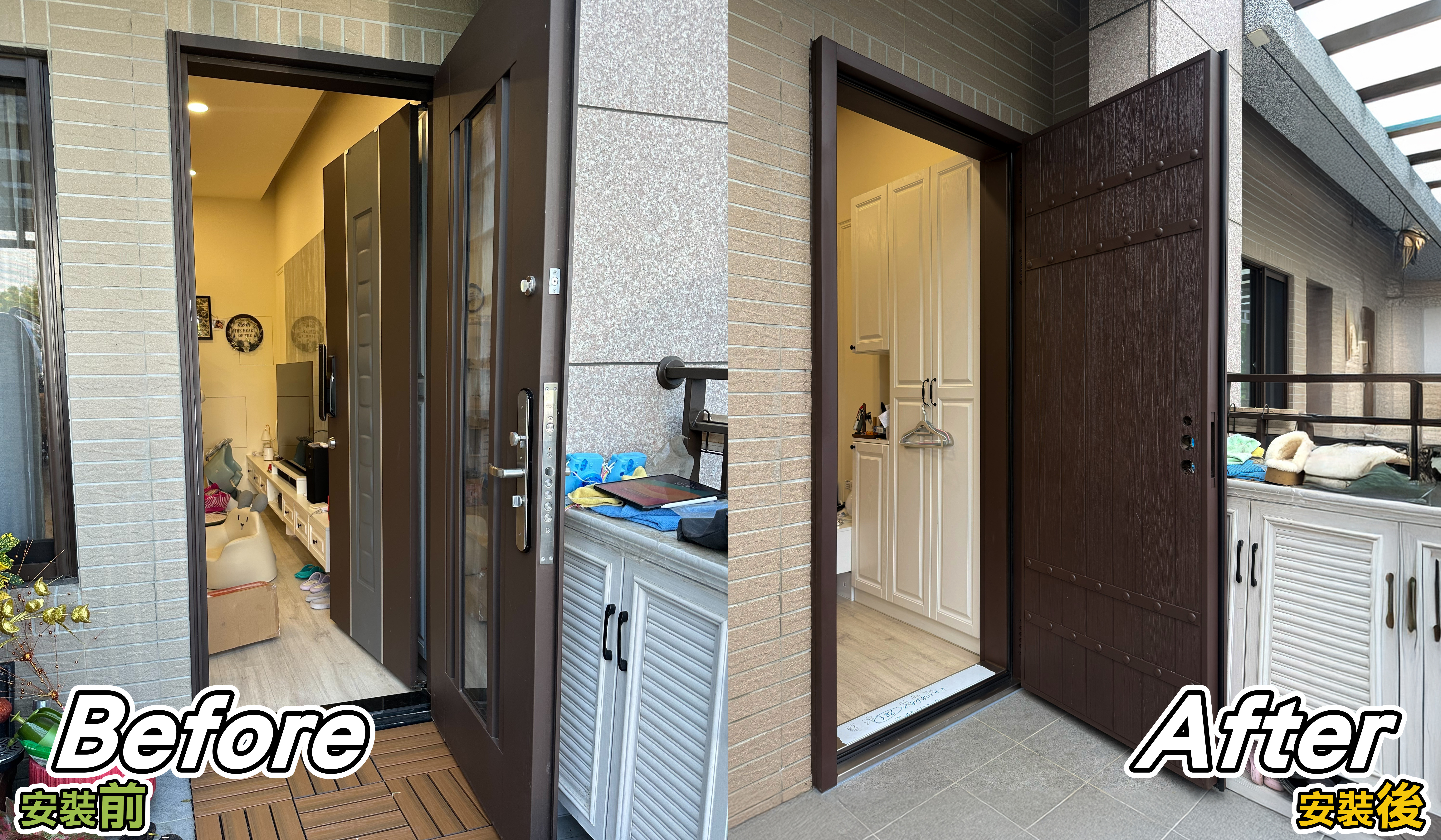 ✅ 解決方案:玄關門採用「乾式施工法」包框換門